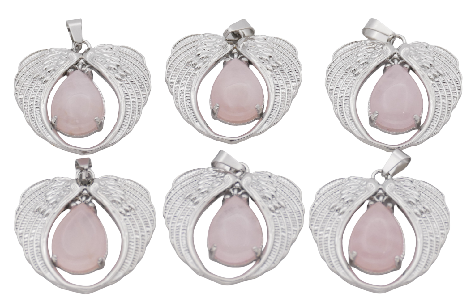 Groothandel – Rozenkwarts Hanger met Engelenvleugels (Set van 6 Stuks)
