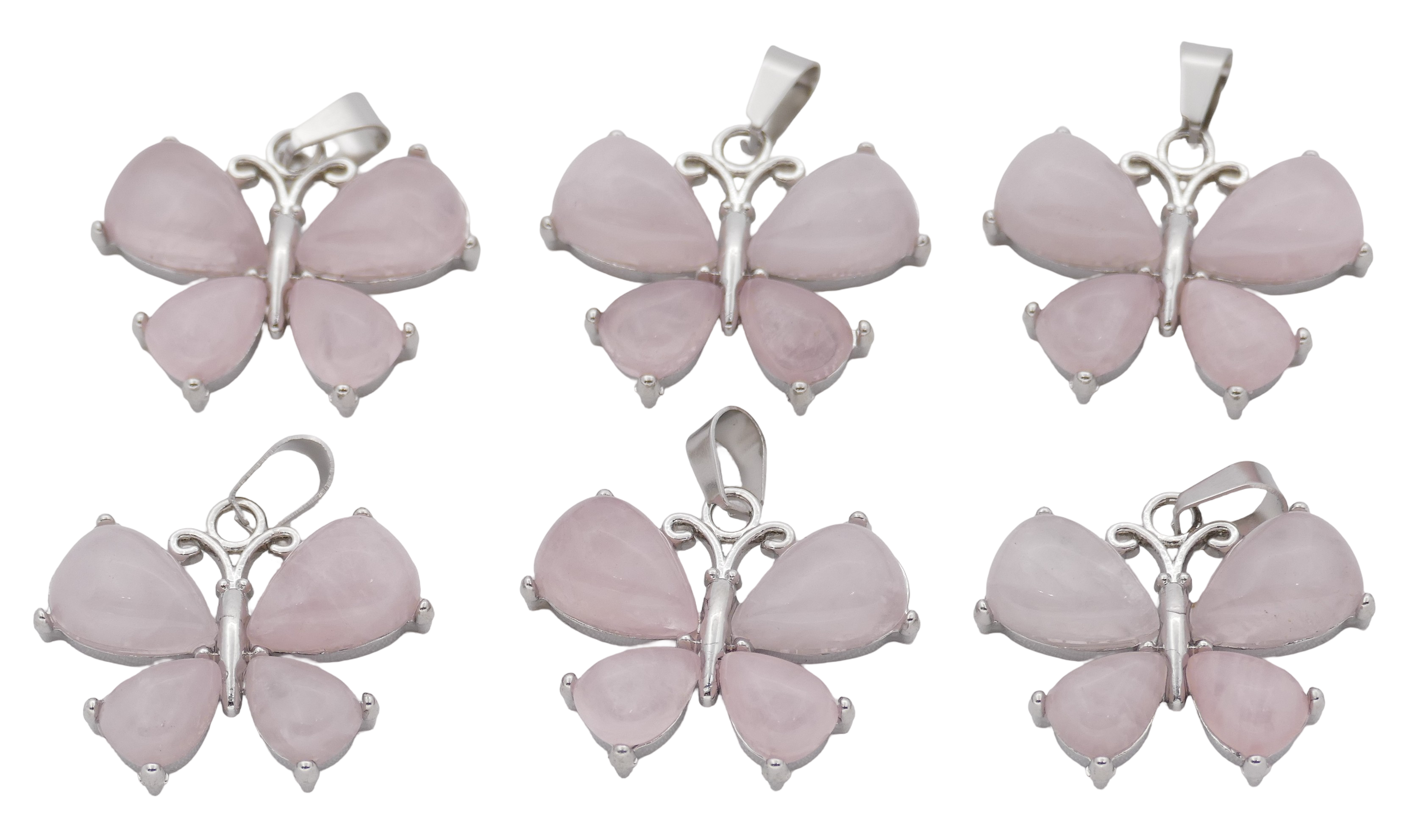 Groothandel – Rozenkwarts Vlinder Edelsteen Hangers (Set van 6 Stuks)