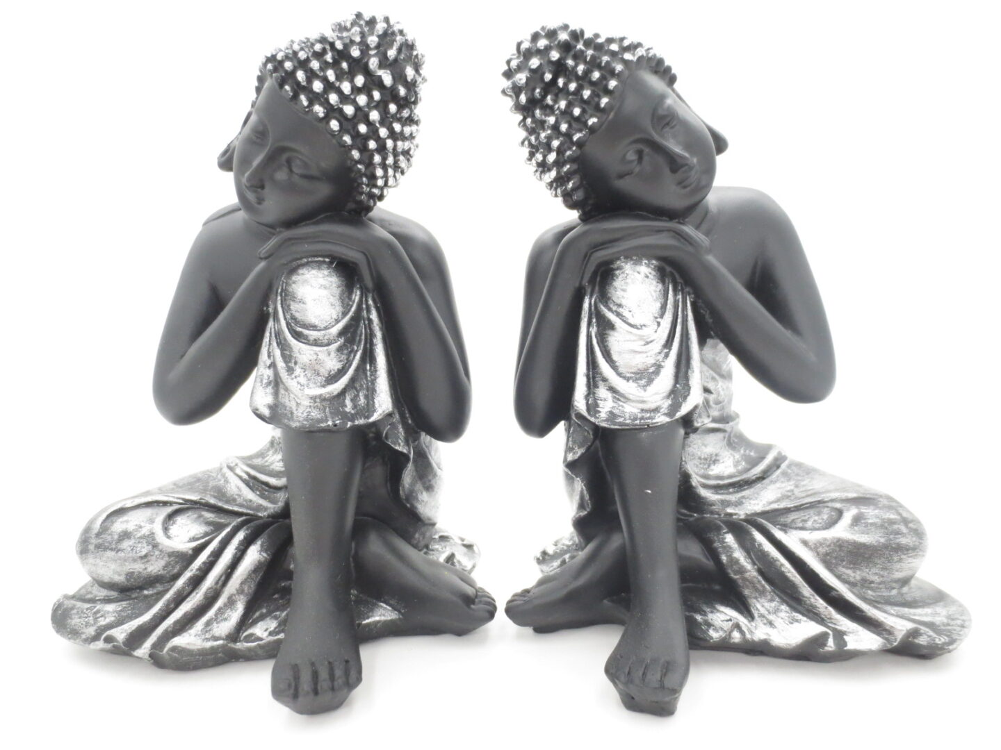 Slapende Boeddha in het zilver/zwart. Verkrijgbaar in 3 verschillende maten.