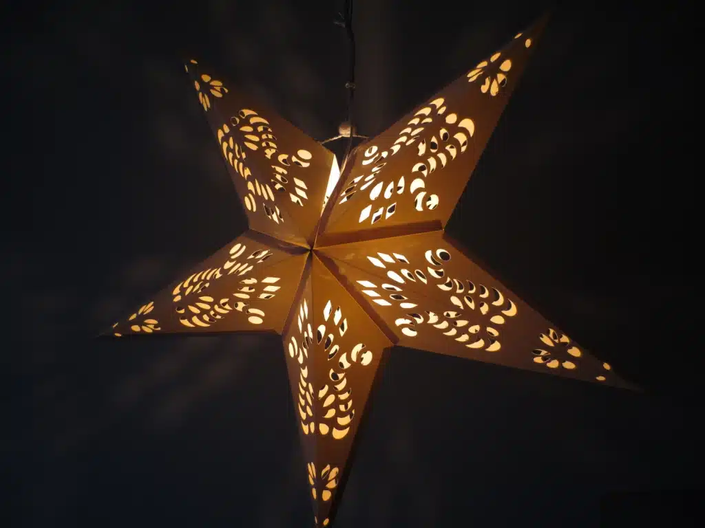 Deze elegante papieren ster lantaarn voegt warmte en charme toe aan elke ruimte. Hij is gemaakt van duurzaam decoratief papier en heeft ingewikkelde uitgesneden patronen die een prachtige gloed creëren wanneer hij wordt aangestoken. Ideaal voor feestelijke gelegenheden zoals Kerstmis, Diwali, bruiloften of feesten, maar ook het hele jaar door een stijlvol decoratiestuk voor in huis. Hang hem in ramen, woonkamers of op evenementenlocaties voor een gezellige en uitnodigende sfeer. Deze herbruikbare papieren ster lantaarn is eenvoudig te monteren en geschikt voor gebruik met een led- of spaarlamp. Hij combineert traditie en elegantie – perfect voor feesten, speciale evenementen of dagelijkse decoratieve verlichting.