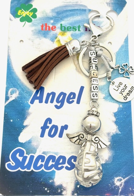 Donkerbruine “SUCCESS” Angel Sleutelhanger met Tassel