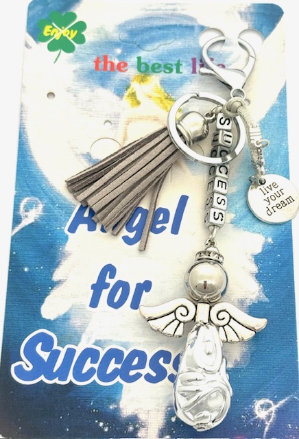 Groothandel – Grijse “SUCCESS” Angel Sleutelhanger met Tassel