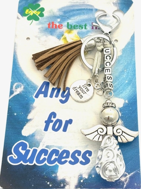 Groothandel – Lichtbruine “SUCCESS” Angel Sleutelhanger met Tassel