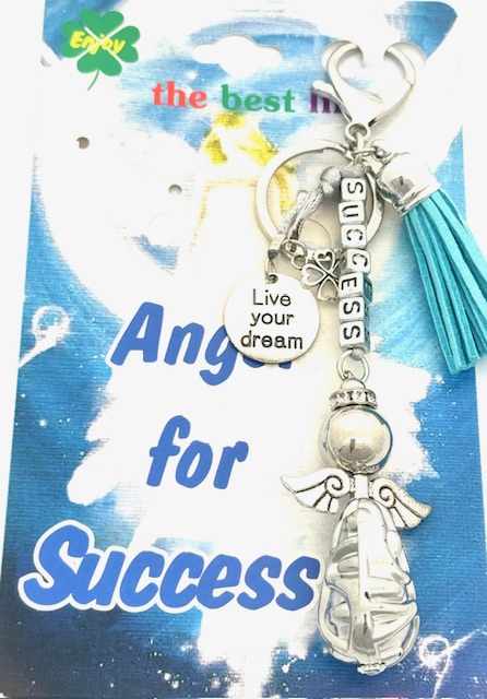 Groothandel – Turkooise “SUCCESS” Angel Sleutelhanger met Tassel