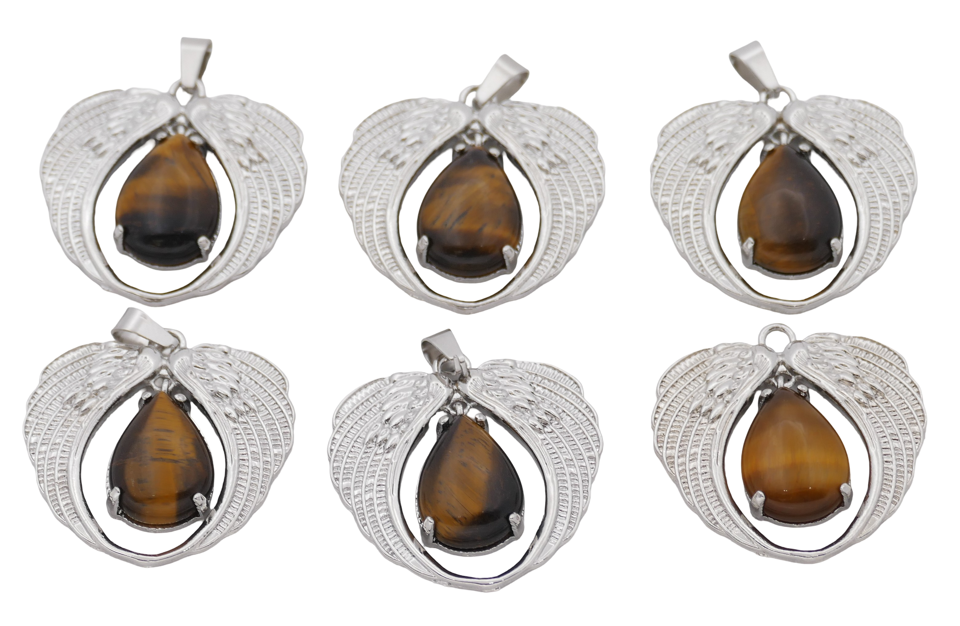 Groothandel – Tijgeroog Hanger met Engelenvleugels (Set van 6 Stuks)