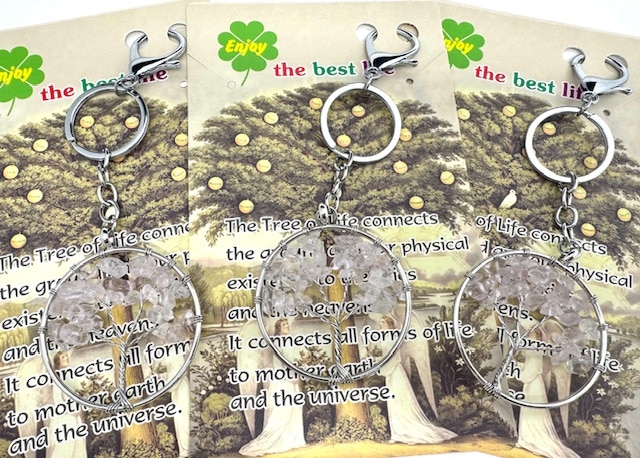Groothandel – Tree of Life Sleutelhanger met Bergkristal Edelstenen