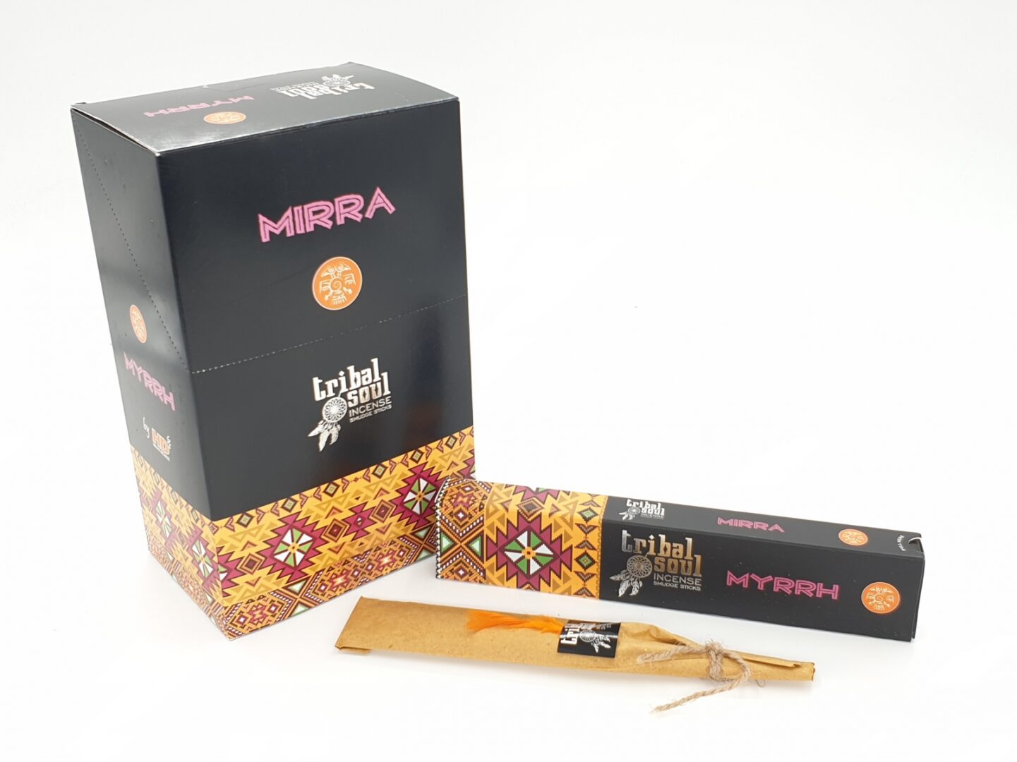 Myrrh is een natuurlijke hars gewonnen uit de Commiphora-boom. Het is door de geschiedenis heen gebruikt als parfum, wierook en medicijn. het wordt ook genoemd in vele oude teksten, inclusief de Bijbel en de Thora, vanwege zijn vermogen om verbinding te maken met het Goddelijke. Myrrh wordt traditioneel gebruikt in gebed en als een offer bij proctetie-rituelen. Het staat ook bekend om zijn zuiverende eigenschappen, om de ziel te reinigen en de geest te zuiveren. Myrrhhars heeft een warme, kruidige, balsamico geur die meditatie en spirituele verheffing bevordert.