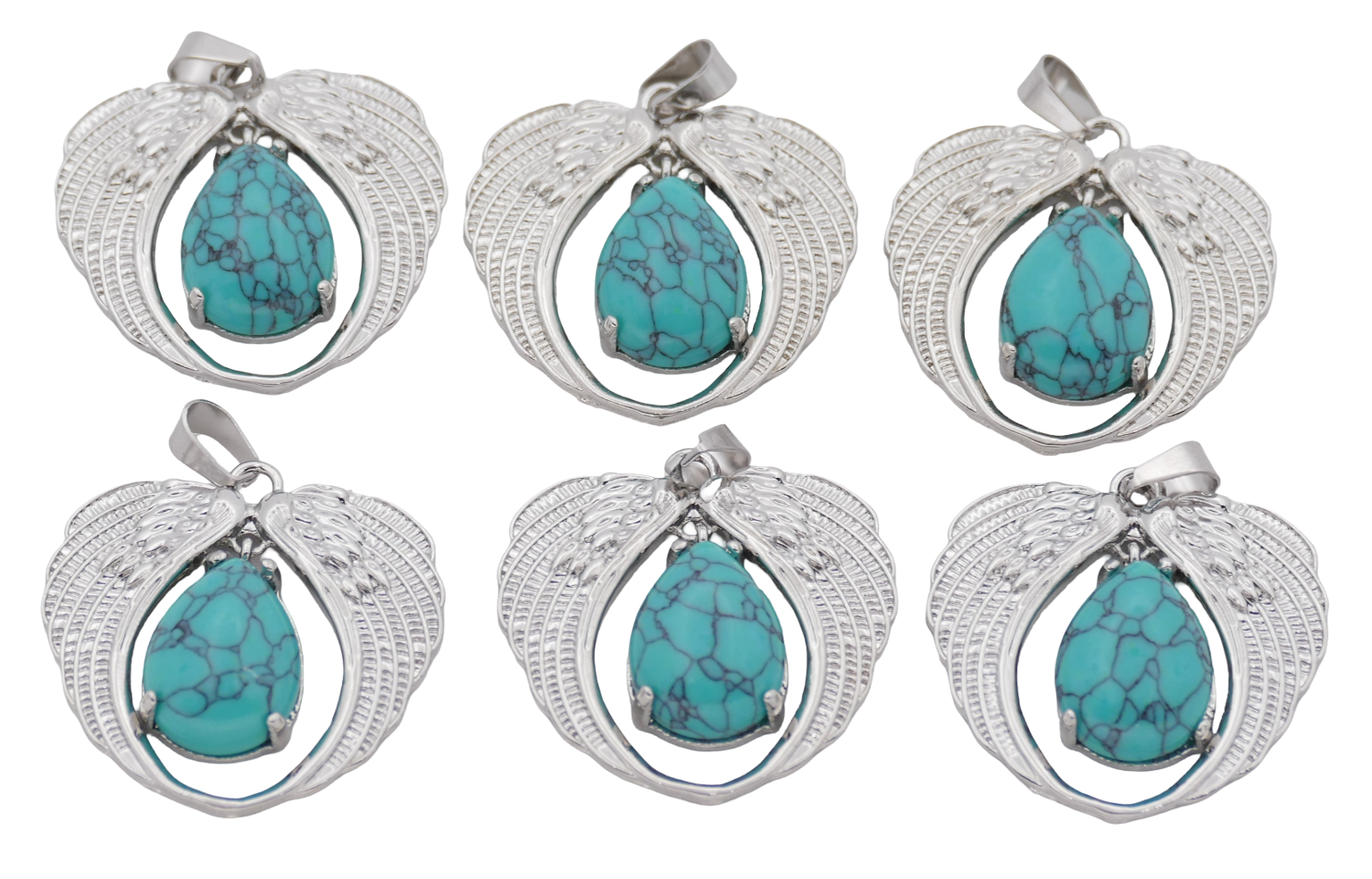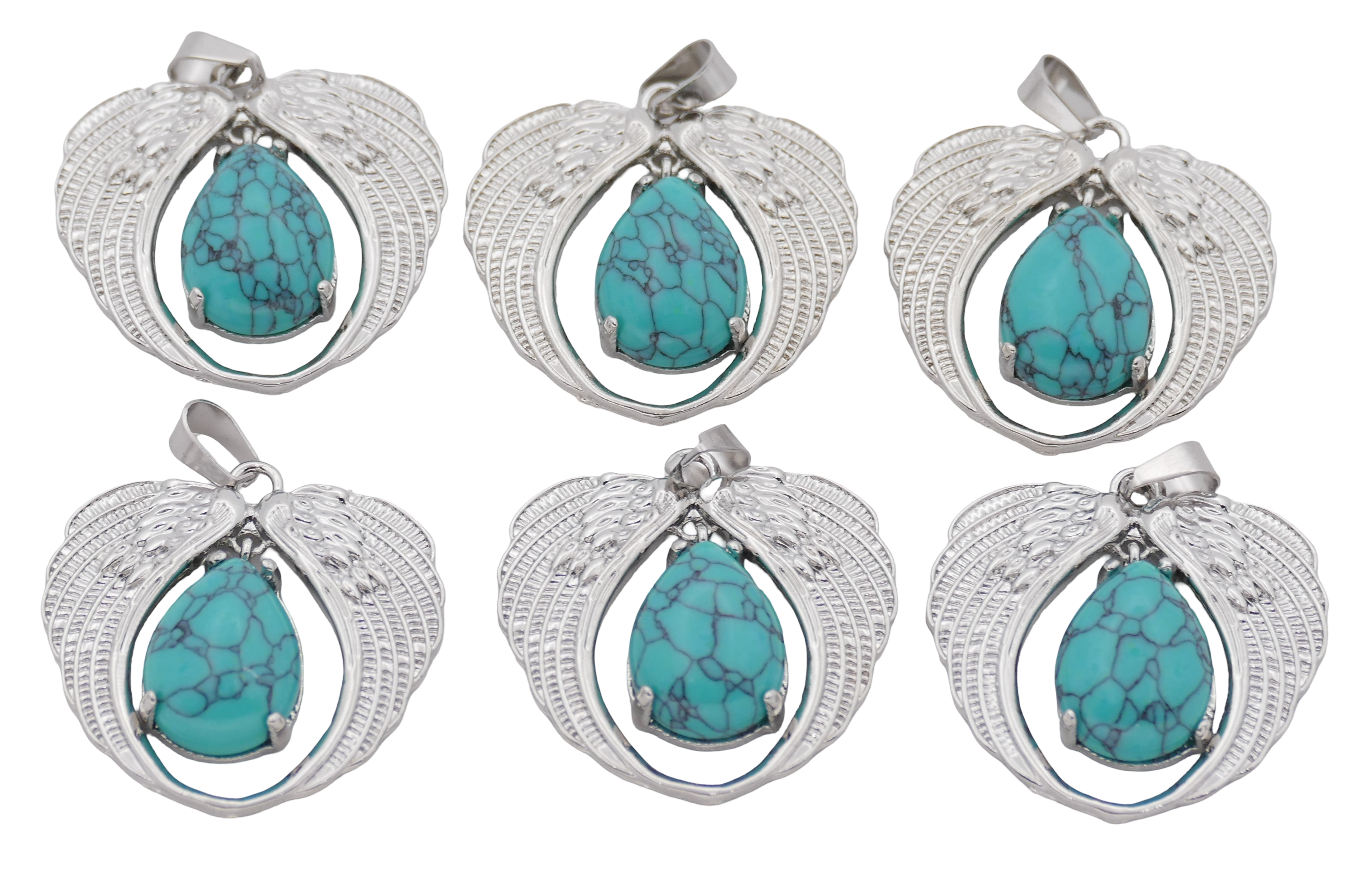 Groothandel – Turkoois Hanger met Engelenvleugels (Set van 6 Stuks)