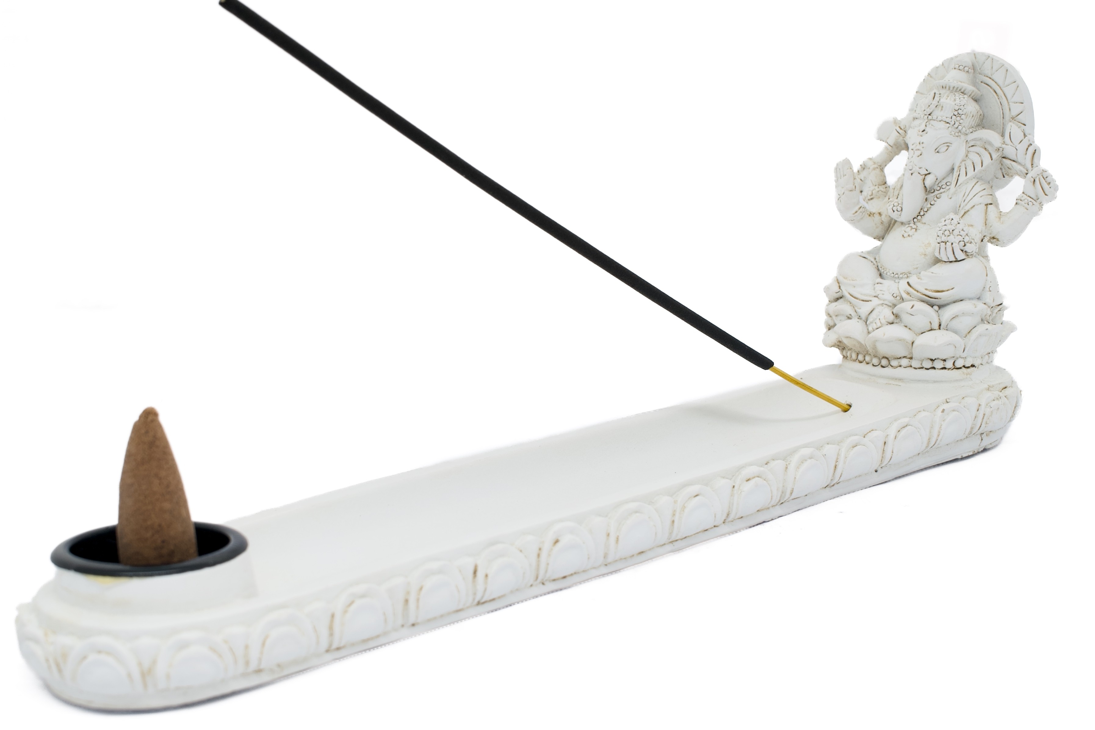 Groothandel – Witte Ganesh Wierookhouder voor Stokjes & Kegels