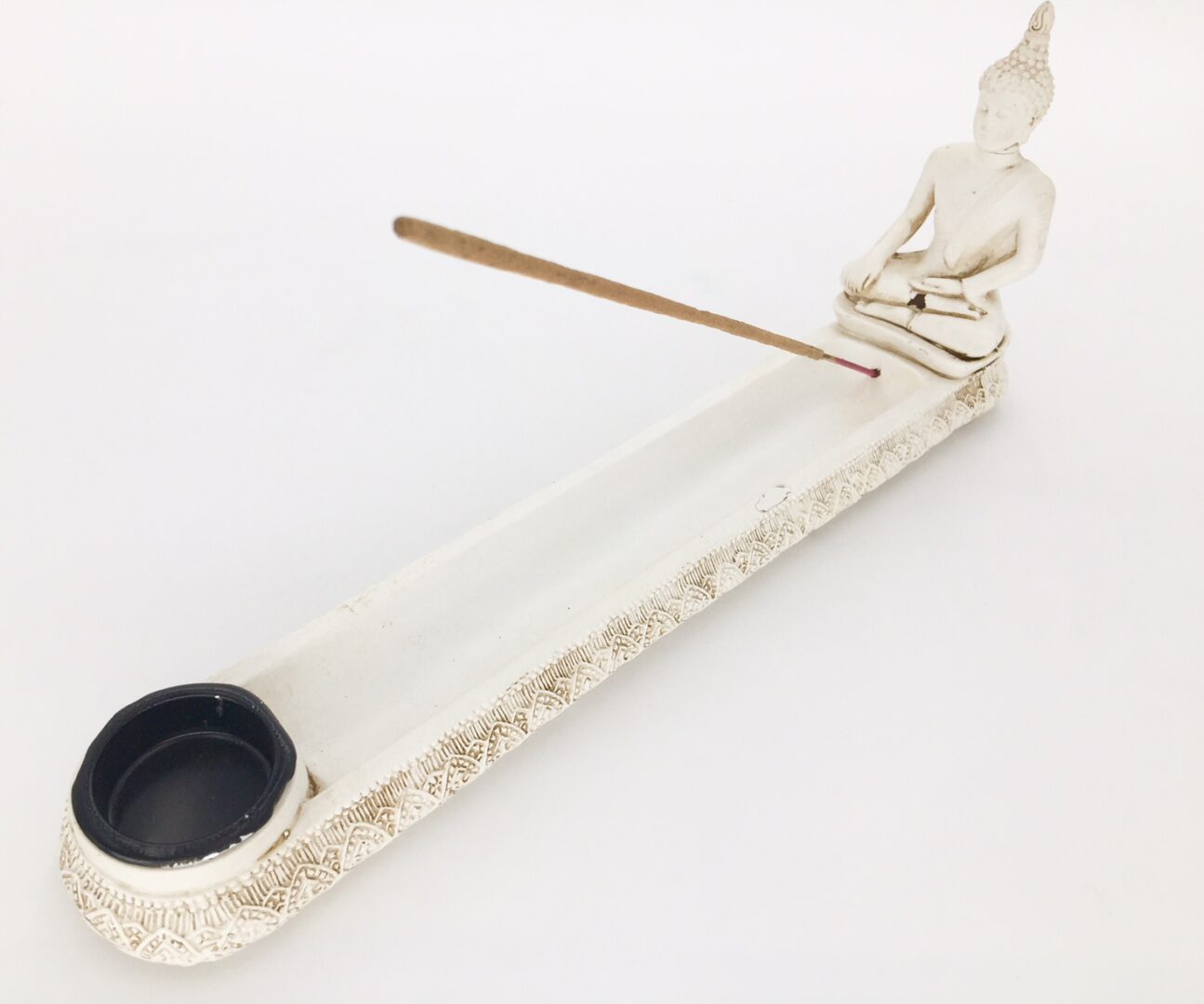 Wierookplank Thai Boeddha wit, witte Boeddha wierookplank, Thai Boeddha design, wit wierookplank